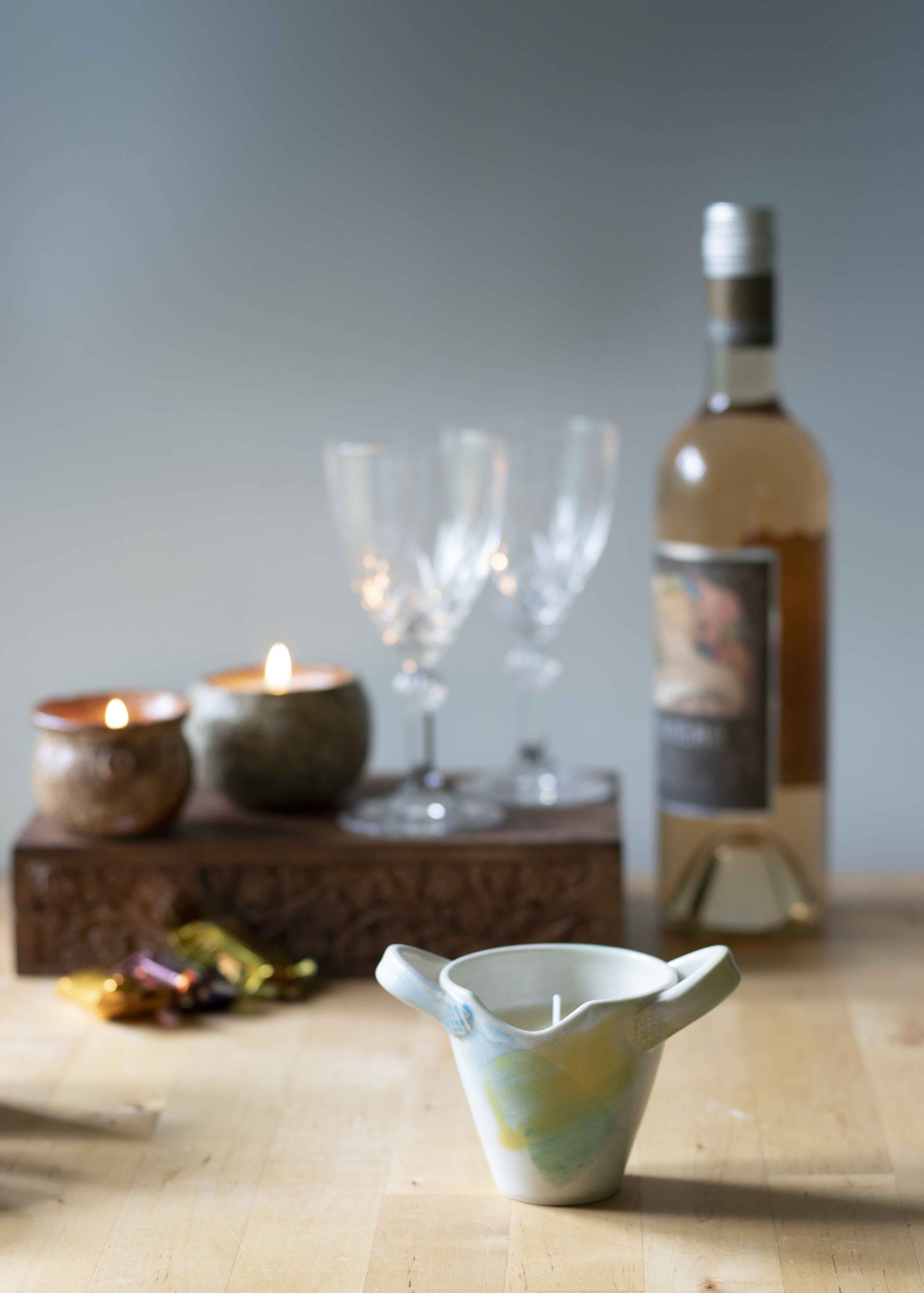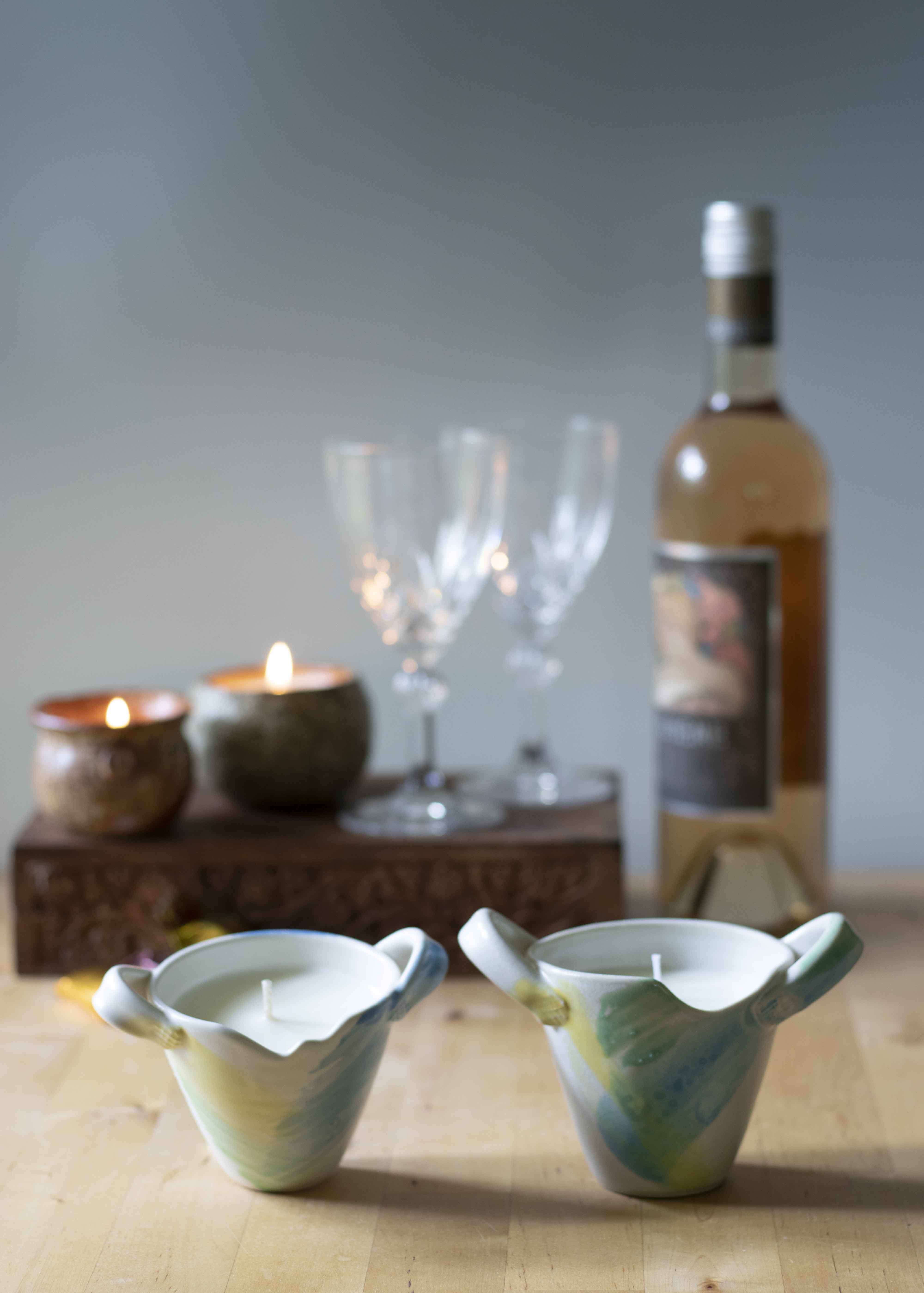 Candle bowl in pastels with handles
